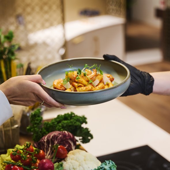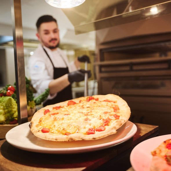 Kaskada is also a place where not only à la carte meals but also the buffet dinner becomes a culinary journey. From the vegetable gardens of Narvil, where we grow many of our own ingredients, to the flavors and aromas of Tuscany and Naples, brought to life by our new exceptional oven. Thanks to the Italforni Diamond – a panoramic, 360-degree oven standing at the center of Kaskada – everyone will have the opportunity to create their own pizza during the buffet dinner, watch it bake before their eyes, and then enjoy it fresh at their table.