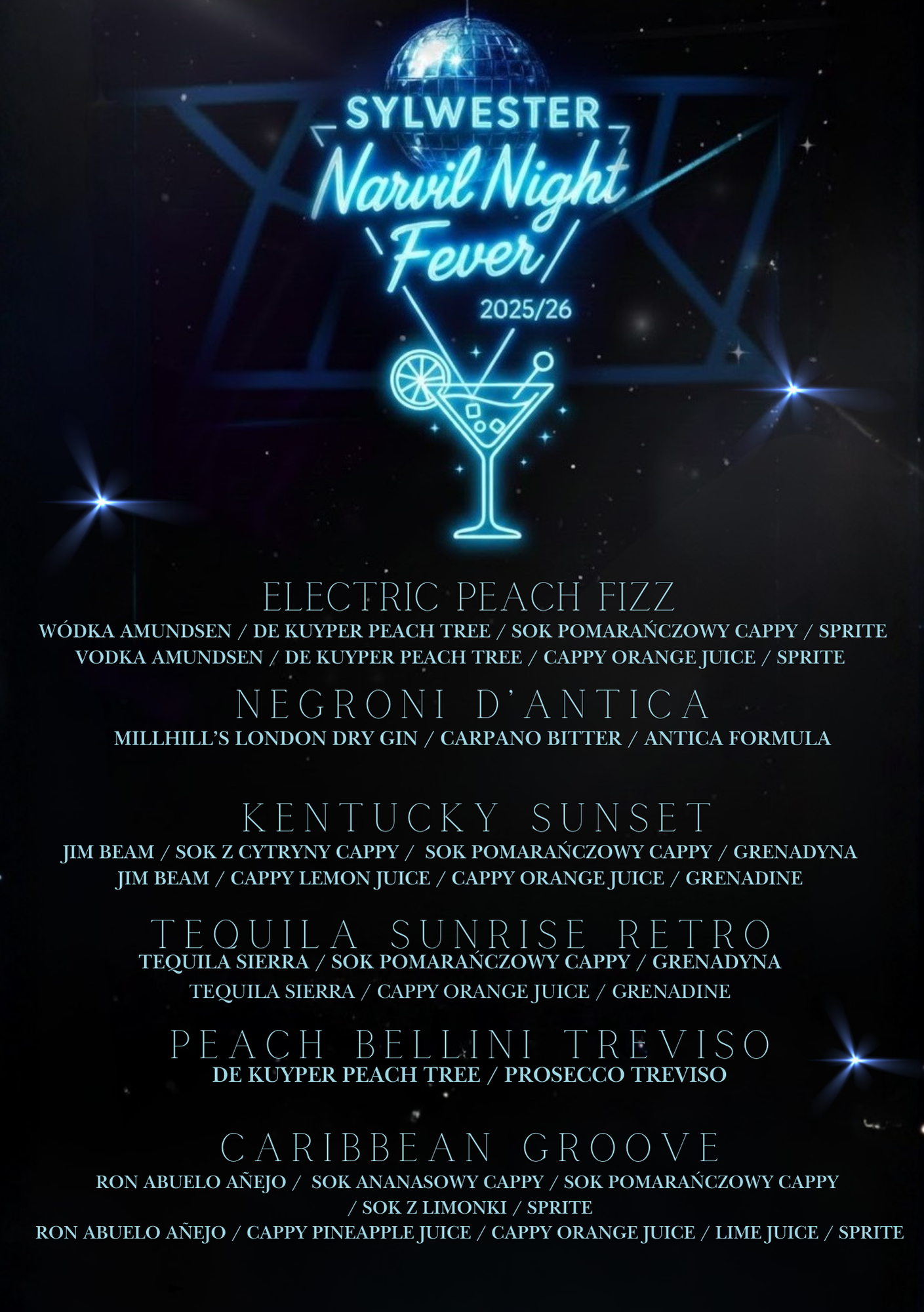 Całość dopełni bogaty open bar z szampańskimi toastami o północy, kreatywnymi koktajlami w rytmie disco oraz szerokim wyborem napojów bezalkoholowych. To będzie noc, w której świat kulinariów połączy się z blaskiem parkietu – prawdziwa, wielozmysłowa podróż w rytmie disco!