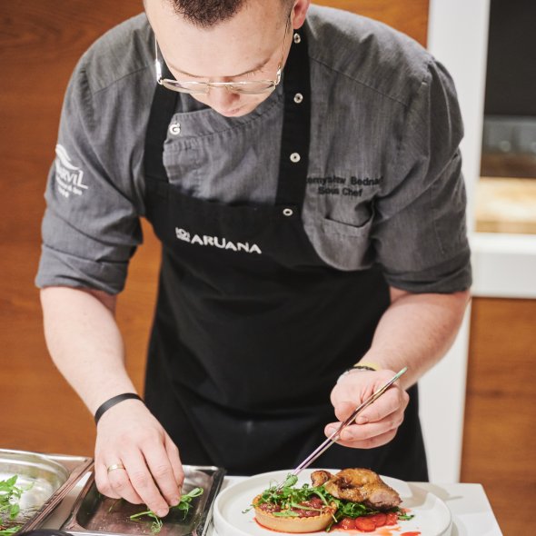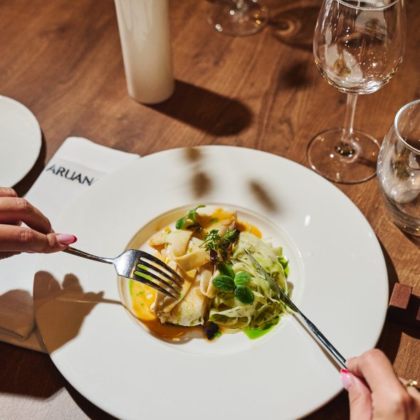 Menu stworzone przez Szefa Kuchni Aruana, Przemysława Bednarza, bazuje na regionalnych produktach najwyższej jakości, oddając jednocześnie hołd sezonowości i naturze. Każde danie jest tu efektem przemyślanej kompozycji smaków, tworzonej z dbałością o detale, aby zapewnić gościom niepowtarzalne doznania kulinarne.