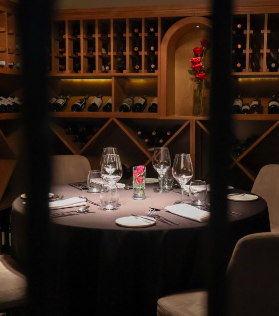 Nasza piwniczka to nie tylko imponująca kolekcja etykiet z całego świata, ale przede wszystkim kameralna sceneria dla kulinarnych odkryć. Blask świec odbijający się w kryształowym szkle, starannie dobrana oprawa tworzą aurę elegancji, idealną na romantyczną kolację we dwoje lub prestiżowe spotkanie w wąskim gronie.