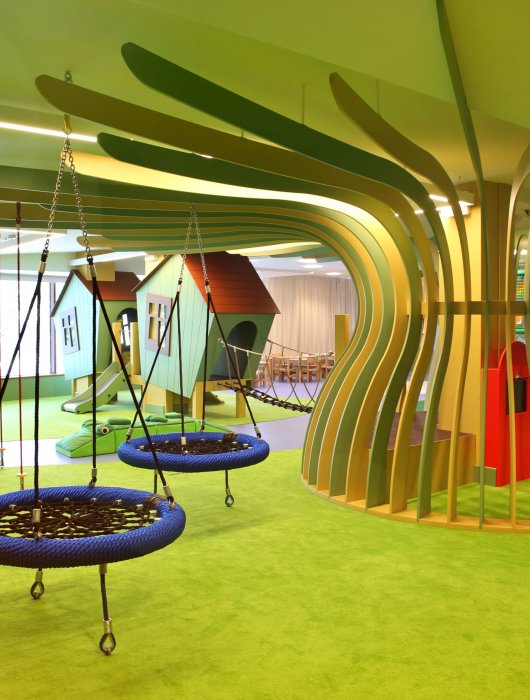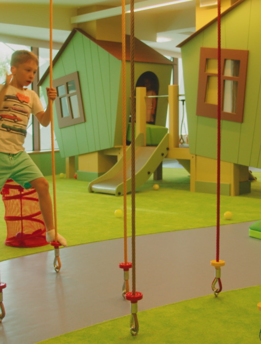 Серцем «Нарвіландії» є сучасна ігрова кімната, у якій професійні та досвідчені аніматори подбають про безтурботне та безпечне проведення часу дітей. Ігрова кімната включає: багаторівневі смуги перешкод, гірки, мотузкові містки, гойдалки, мультимедійний будиночок із 40 розвиваючими іграми, інтерактивний килимок, 56-дюймові екрани з консолями Xbox та модуль Kinect KNOOCKER - інтерактивна гра для дітей та підлітків.